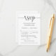 Il s'agit de la belle carte de boîtier RSVP romantique moderne (Répond), en caractères noirs, où vous pouvez modifier et mettre en forme selon vos besoins de conception, avec options de repas, sièges réservés, nombre de participants et option de demande de chanson.