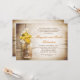 Fond en bois rustique romantique et pot de maçon avec fleurs jaunes et blanches fête d'anniversaire de mariage ou invitations pour dîner d'anniversaire de mariage. Je suggère un papier Linen pour ce design.