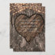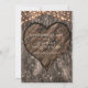 Faire-part de mariage rustique avec tronc d'arbre sculpté de cœur.