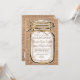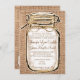 Cette invitation rustique de mariage campagnard comporte une conception de pot de maçon avec une teinte brune et un arc de ficelle autour de elle, sur une conception vintage imprimée de jute de toile de jute. La toile de jute et la ficelle sont juste des conceptions imprimées, tissu de toile de jute ou corde non réel de ficelle. Ce sont parfaits pour n'importe quel mariage campagnard rustique, particulièrement ceux qui emploiera les pots de maçon et la toile de jute dans leurs décorations de réception de décor de mariage et de mariage. Ce modèle rustique d'invitation de mariage campagnard peut être customisé avec votre propre libellé de faire-part de mariage. Si vous devez ajouter plus de lignes de texte ou changer la couleur ou le style de police, employez juste la "personnaliser il" bouton. Assortiment épousant des cartes de RSVP disponibles séparément pour votre mariage de pot de maçon de style campagnard :