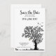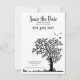 Un faire-part simple mais élégant avec un arbre / des oiseaux et une cage à oiseau suspendue