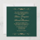 Le défilement doré accentue l'avant et l'arrière avec le texte correspondant. Le vert foncé et ce look simple et solide est fantastique pour un mariage en soirée ou en hiver. Placez les prénoms de la Mariée et de la Salle avec la date du mariage d'un côté, donnant à vos invitations une sensation moins formelle. De l'autre côté, l'information pertinente du mariage ajoute une touche classique. Lorsque vous faites vos invitations triple vérifier toutes vos orthographes et dates.