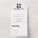 Faire-part de mariage unique avec quelques squelettes élégamment habillés. Il comprend une carte postale invitation et RSVP que vos invités peuvent couper et renvoyer.