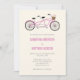 Un faire-part de mariage moderne comportant un vélo tandem avec un panier et des fleurs. Enquérez-vous svp des couleurs faites sur commande !