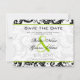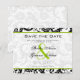 Faire-part de mariage à motifs damassés floraux noirs et blancs vintage modernes avec une garniture verte pomme. Parfait pour les thèmes de mariage Rococo Baroque, Renaissance médiévale, Art déco Art nouveau, Gatsby des années 20, Victorien ou élégant mariage à la ferme.