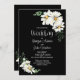 Invitez vos amis et proches à votre mariage avec ce faire-part de mariage à motif de marguerites blanches sur fond noir. Conçu pour les couples soucieux de leur budget, ce faire-part comprend les informations sur la réception, les détails de la demande de RSVP, et toute autre information que vous souhaitez inclure au verso du faire-part, vous permettant d'économiser sur les frais d'envoi supplémentaires et la papeterie de mariage.