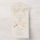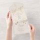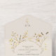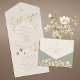 Cette invitation de mariage tout-en-un offre une élégante commodité avec un design pliable, une carte de réponse et une adresse de retour en un seul élément. Sur un fond doux vert sauge, les délicates fleurs sauvages beige et or ajoutent un charme rustique et botanique, idéal pour les mariages bohèmes, de jardin ou d'automne.