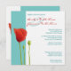 TOUS LES PRODUITS SONT ENTIÈREMENT PERSONNALISABLES. Dessin original en crayon de couleur d'une fleur de pavot rouge contre un arrière - plan turquoise, un thème lumineux et agréable pour un mariage, une carte de fête ou d'occasion spéciale, de la papeterie et des faveurs ou cadeaux de soirée assortis. Correspond également à :