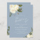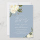 aquarelle garland fleuri blanc et feuillage vert avec un arrière - plan bleu poussiéreux. Vous pouvez modifier le libellé, la taille du texte, les couleurs et la police de ce modèle.