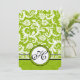 Monogramme Apple Vert et Noir Romantique Tourbillonnant Edgy et moderne Floral Damask Modèle Mariage Invitations