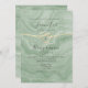 Élégant, boho, faire-part de mariage moderne abstrait en marbre géode vert sage avec dos monogramme, écriture calligraphique tendance et cœur de corde dorée fausse.