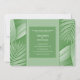 Organisez-vous un mariage ou un événement spécial en plein air ? Ces invitations de mariage à thème tropical offrent une touche amusante et classique. Caractéristiques des teintes de couleur verte avec des feuilles tropicales. Utilisez pour compléter les thèmes de mariage tropicaux et les événements spéciaux. Le recto de la carte affiche "Save the Date" tandis que le verso comprend les détails de votre événement. Utilisez le modèle pour personnaliser.