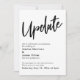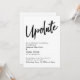 La distinction de cette suite est due à la police de script manuscrite décontractée et audacieuse utilisée pour les phrases d'accent. Si vous êtes en position de devoir informer vos invités mariages que vous avez dû changer de date importante, voici une option audacieuse. Dans cet article, la police de caractères manuscrite a été utilisée pour créer un graphique simple représentant le mot "Mettre à jour". Utilisez les champs modèles pour ajouter vos détails personnels et faire de ce design moderne votre propre. L'arrière - plan blanc peut être changé à n'importe quelle couleur que vous préférez. Veuillez communiquer avec toute demande spéciale ou customiser de l'aide. // 105 //