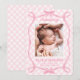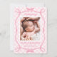 Ce faire-part de naissance sucré comporte une photo verticale avec un cadre ruban rose dessiné à la main et un arrière - plan motif rose en vichy. Vous pouvez facilement ajouter une autre photo et un autre texte au dos si nécessaire.