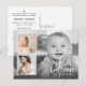 Calligraphie moderne "Bienvenue" avec une grande photo, deux petites photos dans un cadre avec des statistiques de naissance et message personnalisé carte postale d'annonce.