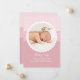 Une douce annonce rose avec une fenêtre photo ronde encadrée de minuscules points de couture et de festons.