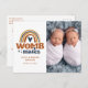 Modèle de photo de bébés jumeaux Carte de voeux de camarades d'utérus modernes et heureux comprenant une de vos photos préférées de vos nouveau-nés jumeaux garçon ou fille avec le texte "Camarades d'utérus" en écriture manuscrite bleue et marron, accentué d'un arc-en-ciel et d'un cœur d'amour. Ajoutez des informations supplémentaires telles que les noms de vos bébés nouveau-nés et les informations de naissance. Au verso, ajoutez votre message personnalisé annonçant l'arrivée de votre bébé nouveau-né ou un message de remerciement des parents et de la famille. ASTUCE PHOTO : centrez votre photo avant de la télécharger sur Zazzle. Conçu par ©Evco Studio www.zazzle.com/store/evcostudio