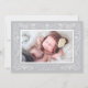Une bordure botanique complexe en douceur gris et blanc encadre votre photo horizontale préférée de nouveau-né dans cette belle faire-part de naissance pour filles tout nouveau-né. Personnalisez avec le nom de votre nouvelle arrivée, les statistiques de naissance et vos noms sous la photo. Ajoutez une deuxième photo au dos si vous le souhaitez, ou retirez l'échantillon pour révéler un motif de rayures grises et blanches.