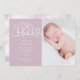 Écriture rustique décorative "bonjour" avec des fleurs et une illustration de pochoir papillon couplée avec le nom et la date dans une police serif élégante. Très facile à customiser avec vos informations et photo pour un faire-part rustique élégant, et vous pouvez changer la couleur de l'arrière - plan au-delà des choix existants de rougeur poussiéreux et bleu bébé.