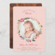 Introduisez la naissance de votre belle petite fille à votre famille et à vos amis avec ce carte photo de bébé botanique fleuri, élégant, propre, simpliste et moderne en forme de couronne. Nous avons dessiné à la main ce feuillage de couronnes botaniques florales pour vous permettre de placer la photo de votre nouveau bébé. Nous avons créé un design élégant et moderne propre qui permet à votre nouvelle photo bébé de prendre le centre de la scène. L'envers est doté d'un arrière - plan en bois rustique à la texture imitation bois avec une belle place en monogramme de couronne fleurie au centre de la carte. Toutes les illustrations contenues dans cette carte de faire-part de naissance bébé moderne, élégant et propre sont dessinées à la main par Moodthology. Vous pouvez customiser la taille du texte, la couleur du texte, la police et la mise en page de votre propre préférence de conception personnelle.