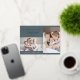 FAIRE-PART DE NAISSANCE de la carte de Noël AUDREY Blue Foil. Personnalisez l'avant de la carte avec 2 photos, votre nom de famille et l'année. Personnalisez le dos avec un accueil de vacances ou des nouvelles de famille en option, et votre nom de famille.