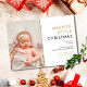 Partagez la joie d'une naissance à Noël avec ce faire-part de naissance élégant et moderne. Personnalisez la couverture avec votre photo spéciale, le nom de votre bébé et les détails de naissance, ainsi que votre message de Noël. Le verso présente de jolis flocons de neige tombant sur un fond givré. Conçu par Thisisnotme©