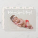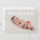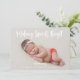 Une faire-part de naissance de fille douce et moderne pour les vacances. Un design typographique avec une superposition de texte blanc de "Making Spirits Bright" et "introduction" ainsi que du texte personnalisable pour le nom et les statistiques du bébé. Sur le dos se trouve un motif de Noël pastel et girly.