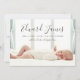 Cartes photos bébé imprimés sur mesure et abordables. Ce design minimaliste élégant est orné d'une typographie élégante superposée sur votre photo de nouveau-né à fond de sang. Personnalisez-le avec le nom du bébé et les statistiques de naissance ou tout autre texte personnalisé. Utilisez les outils de conception pour choisir n'importe quelle couleur arrière - plan, modifier les polices de texte et les couleurs, ajouter plus de photos et créer un unique d'un faire-part de naissance bébé gentil pour votre nouveau bébé garçon ou fille.