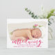 Un faire-part de naissance charmant et moderne qui montre votre petite fille, avec un effet aquarelle police de script de brosse et ouverture de trait de brosse.