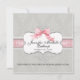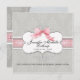 Dans une palette subtile et sophistiquée de gris colombe doux et de rose blush pastel, cette annonce de naissance présente des volutes et des arabesques élégantes de style calligraphique en cuivre français à l'arrière-plan, des fioritures de script, un cadre en forme de parenthèse et un magnifique nœud en ruban rose peint à la main, avec une bordure en dentelle de satin froncée à la française. Tout est réalisé à partir d'une œuvre d'art originale à l'aquarelle peinte à la main par Audrey Jeanne Roberts. Le résultat est un ensemble bébé moderne et contemporain d'une beauté exquise. Au verso, on retrouve le même motif de demesk et un cadre révélant un emplacement pour la photo de votre bébé. Vous pouvez facilement ajouter votre propre image ou modifier les messages.