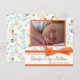 Faire-part de naissance de bébé fille au joli motif de fleurs orange. Utilisez ces faire-part de naissance adorables avec un motif floral avec des tons beige, orange, marron et bleu clair et un détail de ruban mignon pour inviter vos amis et votre famille à célébrer votre nouveau-né. Utilisez l'invite pour personnaliser l'invitation en ajoutant votre propre photo de bébé, le nom du bébé, la date de naissance et les détails du poids. Si vous souhaitez modifier le graphisme, veuillez me contacter via ma boutique et je serai ravi de vous aider. La photo du bébé a été prise à partir d'une source du domaine public (morguefile). AntiqueChandelier© antiquechandelier.ca