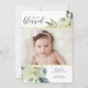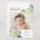 Un beau faire-part de naissance comportant deux photos accentuées par une conception florale d'aquarelle peinte à la main, des accents de parties scintillantes d'or de faux et "sentant" le texte béni. Customisez en ajoutant la stat de naissance, le nom, etc. à la mode et chic pourtant simple et le classique - le faire-part parfait pour votre bébé précieux.