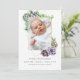 Tendance succulents bébé portrait de naissance carte photo faire-part en forme de portrait avec cadre géométrique or et sauge vert aquarelle inverse.