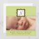 Cette faire-part de naissance moderne présente l'intérieur initial du bébé à l'intérieur d'un cadre avec une pièce sous la photo pour les détails de naissance. Placez-vous sur un arrière - plan vert.