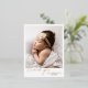 Carte postale simple de nouveau-né avec "merci" dans un script moderne avec le nom du bébé et la date de naissance sous votre photo préférée. Tout le texte sur le devant est en papier or rose. Le dos a une deuxième photo avec votre message personnel. Cette faire-part de naissance élégante est une excellente façon d'annoncer la naissance de votre nouvelle petite fille.