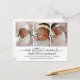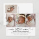 Faire-part de naissance moderne avec trois photos avec des cœurs liés en haut. "Notre petit miracle" en police script et nom, statistiques de naissance en police moderne. Au dos se trouve une autre photo avec un message personnalisable.
