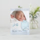 Blue New Baby Boy Photo Faire-part de naissance, dentelle bleue, Chaussures mignonnes. Customisez avec vos propres détails et Photo.