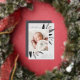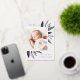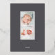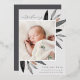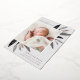 Faire-part de naissance élégante avec une seule photo verticale/portrait ornée de délicats feuilles d'aquarelle monochromatique et d'accents roses en feuille d'or. Personnalisez avec le nom de votre bébé, la date de naissance, les statistiques et une signature familiale. Ajoutez deux photos carrés supplémentaires à l'arrière.