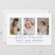 Ce qui rend cette faire-part de naissance spéciale est qu'elle comporte : une photo de bébé seul, bébé et nouvelle maman, bébé et nouveau papa, en plus d'une autre photo de bébé sur le dos avec des statistiques de naissance. Ajoutez un type de script moderne, et offrez à vos amis et à votre famille un instantané de la nouvelle famille, avec 4 photos au total. Remplacez ces photos d'espace réservé par vos propres photos attachantes.