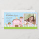 Notre Faire-part de naissance photo unique pour bébé présente une adorable scène de ferme PINK, avec un cheval, un mouton, un rôtisseur, un cochon, une vache et des poussins, Customisez notre Faire-part de naissance avec VOTRE photo et vos informations pour bébé et vous êtes tous prêts à partir! Produits correspondants également disponibles. © Cocoa Studio