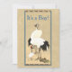 faire-part de naissance Vintage "C'est un garçon". L'art ancien japonais présente une douce famille de grues avec grue bébé et tortues. Dans la culture japonaise/asiatique, les grues sont symboliques de beaucoup de bonheur et de bonne fortune. Personnalisez avec info bébé et photo.