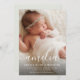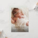 Cet élégant faire-part de naissance photo comporte une grande photo et une belle calligraphie sur le devant. Le prénom de votre nouveau-né est écrit en écriture moderne, et des détails supplémentaires peuvent être ajoutés ci-dessous. Le texte recouvre une photo verticale à fond saigné. La couleur arrière - plan gris clair neutre au dos de la carte peut être changée si vous le souhaitez.