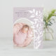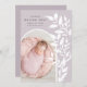 Faire-part de naissance chic et moderne avec une seule photo verticale/orientée en format portrait dans une mise en page en arc, avec des vignes grimpantes de feuilles botaniques blanches le long du côté droit. Personnalisez avec le nom de votre bébé, sa date de naissance et ses statistiques, et ajoutez un message personnel au verso, ainsi qu'une photo supplémentaire.