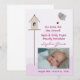 Faire-part de naissance cadre photo fille nid d'oiseau rose et blanc.