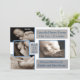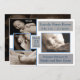 Le Faire-part de naissance Photo Gris et Bleu comprend 3 modèles photo photo personnalisés à l'avant et un grand modèle photo 5x7 à l'arrière du faire-part. Le design est moderne et sobre, avec des modèles photo encadrés gris et bleus sur un arrière - plan blanc. Customisez tout le texte à la formulation souhaitée.