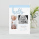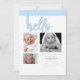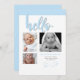 Un ruban de bleu avec des à petits pois blancs crée un arrière - plan pour un grand "bonjour" et dispose de trois fenêtres photo dans ce faire-part de naissance magnifique.<a href='http://www.freepik.com/free-vector/hello-illustration_1055182.htm'>Conçu par Freepik</a>). <br/>() La carte est facile à customiser avec votre libellé, police, couleur de police, options de forme de papier et le choix de six types de papier.<br/>() Pas exactement ce que vous cherchez? Tous nos produits peuvent être conçus sur mesure pour répondre à vos besoins sans frais supplémentaires.<br/>() Il suffit de nous contacter à askcottonlamb@gmail.com<br/>()<br/>Coordonner les produits disponibles : Il suffit de nous demander !