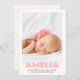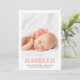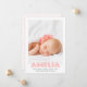 Voici la carte de Faire-part de naissance photo minimal moderne pour filles roses! Cette carte design présente une belle photo de votre petit, avec son nom dans une charmante teinte rose. Le design est élégant et moderne, avec beaucoup d'espace pour présenter la photo de votre bébé. Au bas de la carte, vous trouverez toutes les statistiques importantes, y compris le poids, la taille et la date de naissance de votre bébé. La police utilisée pour les statistiques est simple et facile à lire, ce qui en fait une brise pour les amis et les membres de la famille de prendre tous les détails. Cette carte est le moyen idéal pour annoncer l'arrivée de votre petite fille au monde. C'est chic, sobre, et ça ne manquera pas d'être un succès pour tous ceux qui le reçoivent.