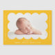 Un aimant faire-part de naissance simple et moderne avec la photo de votre bébé nichée à l'intérieur d'un cadre à pétoncles jaunes. Personnalisez l'aimant faire-part de naissance en ajoutant le nom de votre bébé et des informations supplémentaires en lettres blanches.