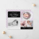 Décontractée et élégante, cette violette et lavande arrière - plan et typographie élégante ouvre la voie à une belle faire-part de naissance pour votre nouvelle petite fille. Avec la place pour un collage photo multiple de votre enfant, cette carte est une belle façon de présenter bébé à la famille et les amis. Coordination du motif rayé violet sur le dos.
