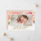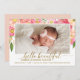 Ce faire-part de naissance de photo de pêche et de tourbe rose est parfait pour un élégant faire-part bébé. Le design floral présente un bel agencement de pivoines aquarelles dans les tons de blush et de corail assorti à la dainty fausse feuille d'or calligraphie qui dit "bonjour beau". Personnalisez la carte avec une photo de votre bébé, des statistiques de naissance et des noms de parents.